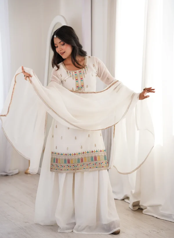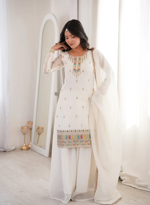 This Ethnic Set Is The Epitome Of Grace And Comfort. The Fabric Is Light, And The Embroidery Is Delicately Done. I Wore It For A Religious Event, And It Made Me Feel Confident And Stylish. The Color Is Exactly As Shown Online, And It Fits True To Size. The Kurta And Palazzo Combination Is Trendy Yet Traditional. It's Such A Versatile Piece To Have In Your Wardrobe. I Am Thoroughly Satisfied With My Purchase, And It's Worth Every Penny.